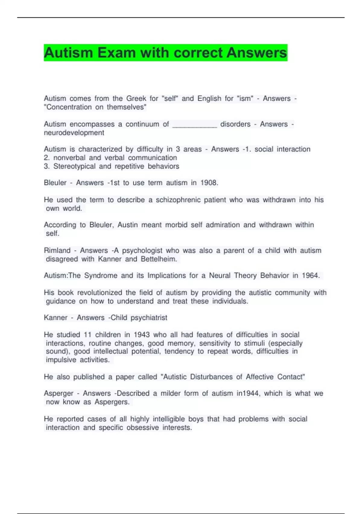 Autism Exam with correct Answers