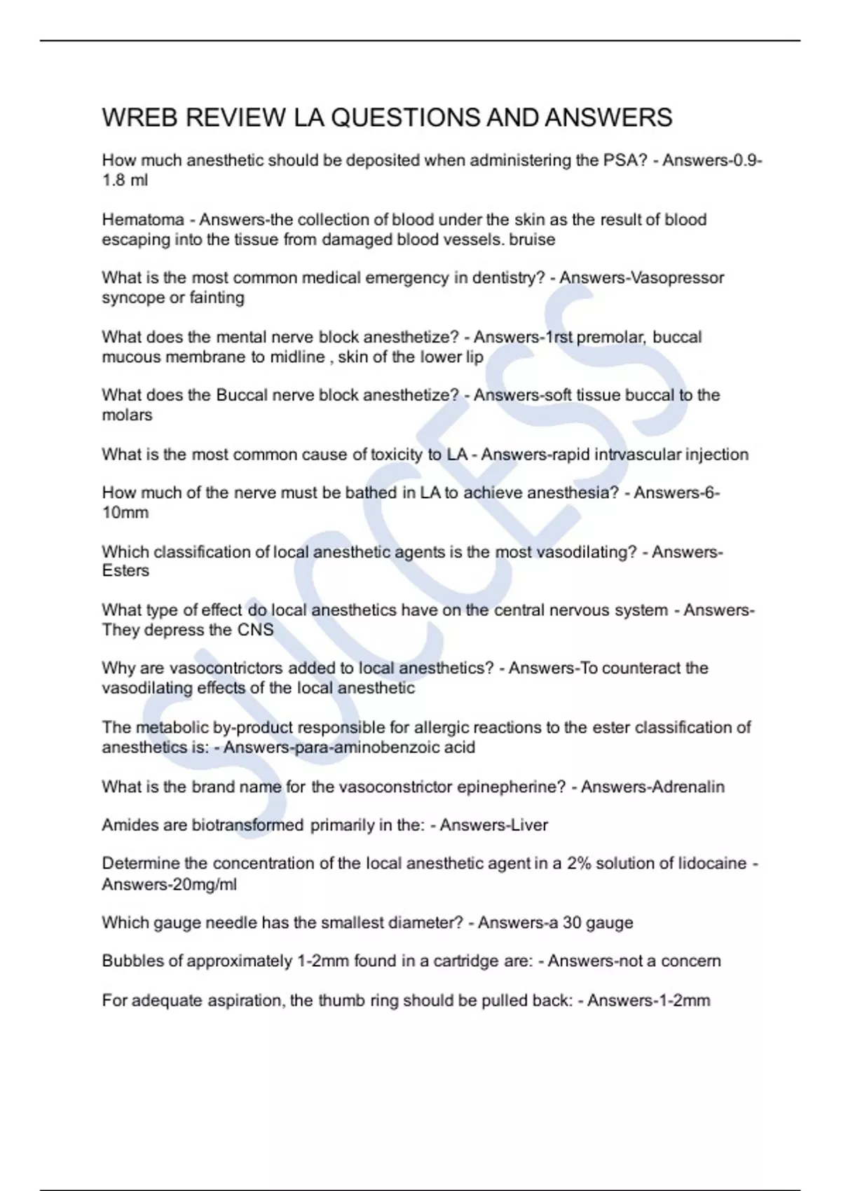 WREB REVIEW LA QUESTIONS AND ANSWERS