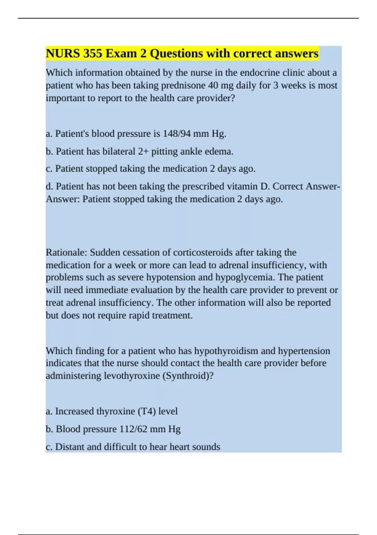 patient who has been taking prednisone 40 mg daily for 3 weeks is most