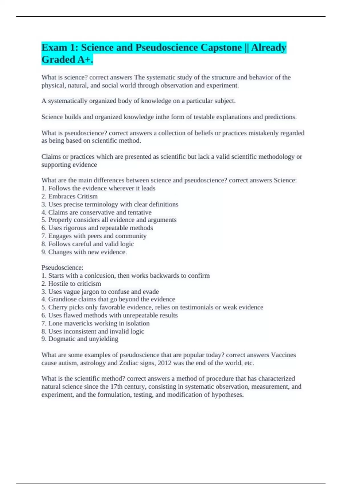 Exam 1: Science and Pseudoscience Capstone || Already Graded A+.