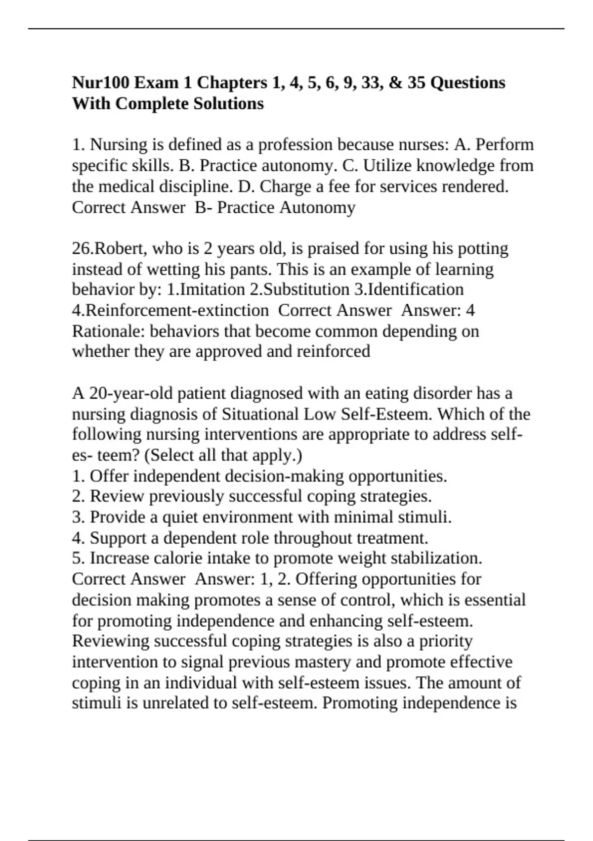 1. Nursing is defined as a profession because nurses: A. Perform