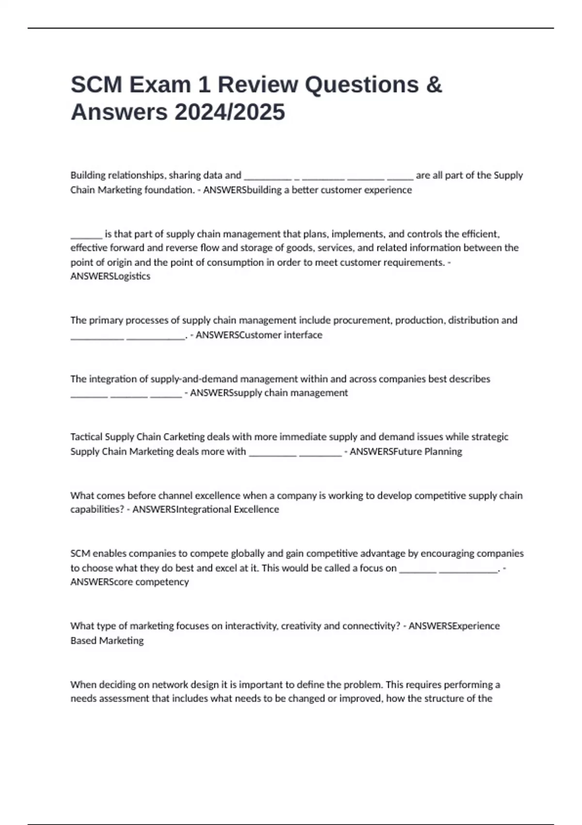 Supply Chain Marketing deals more with _________ ________ - ANSWERSFuture Planning