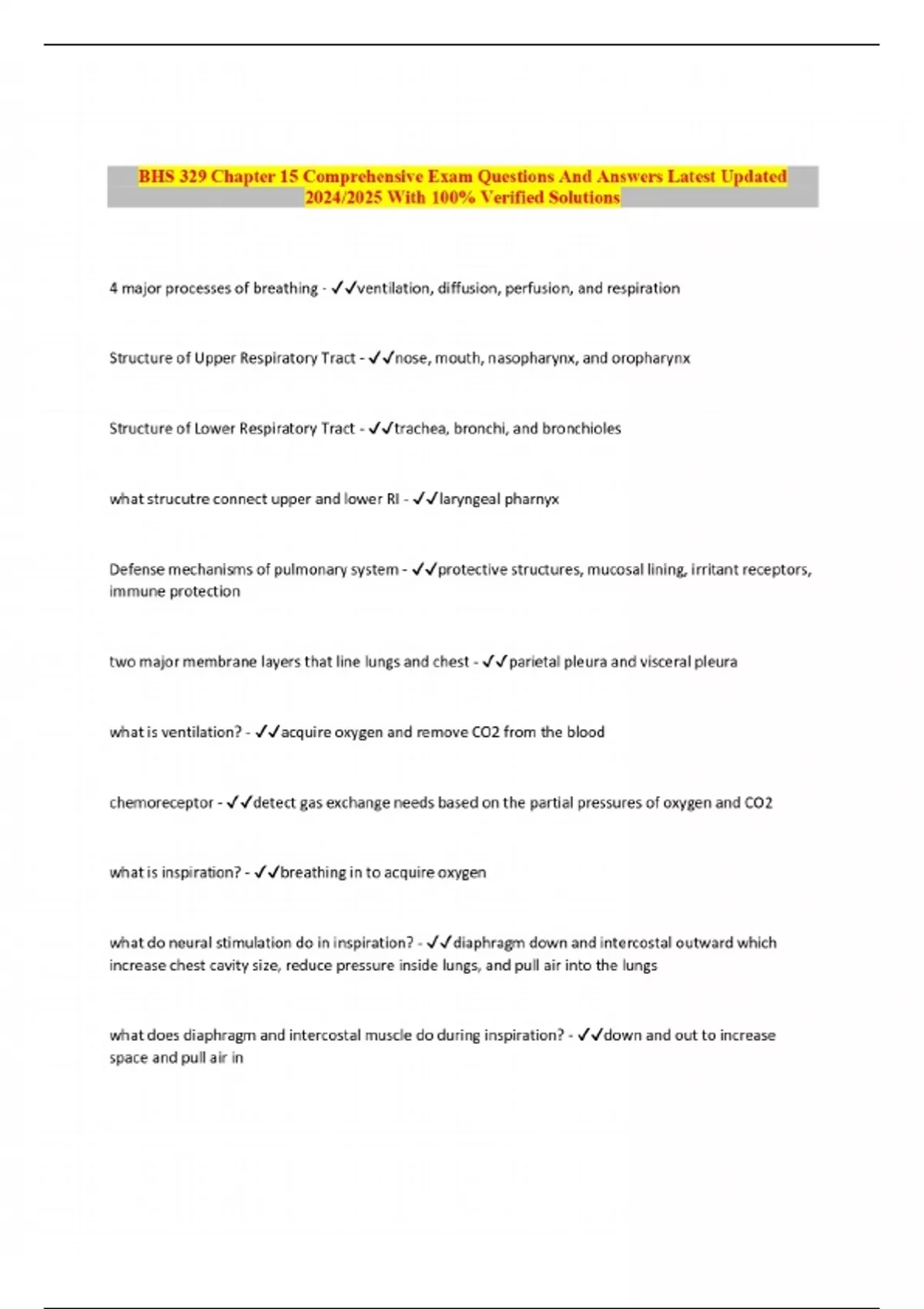 BHS 329 Chapter 15 Comprehensive Exam Questions And Answers Latest Updated 2024/2025 With 100% Verified Solutions