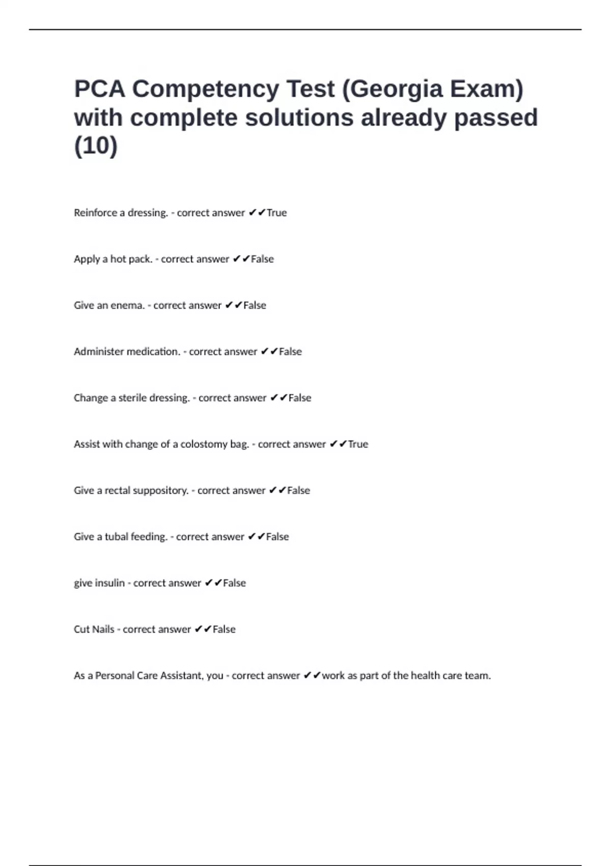 As a Personal Care Assistant, you - correct answer ✔✔work as part of the health care team.