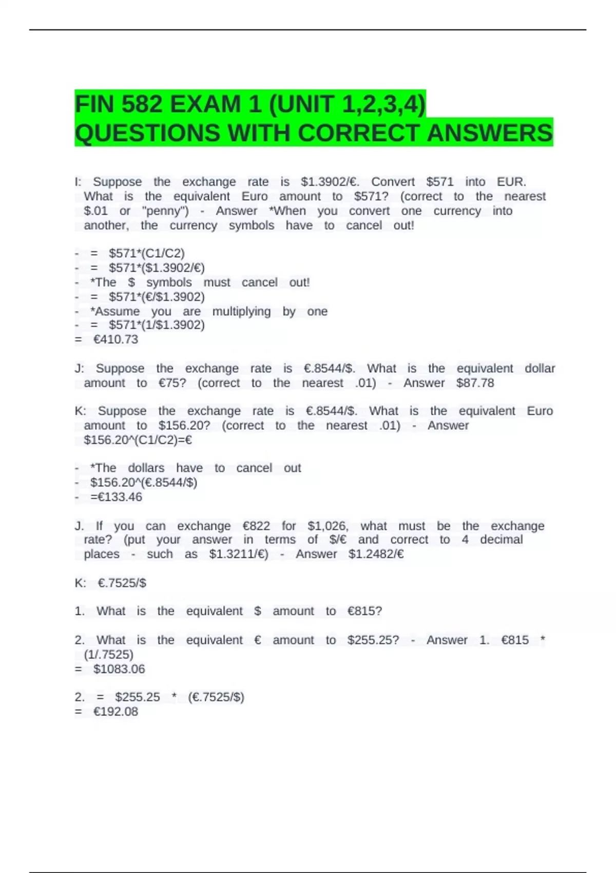 FIN 582 EXAM 1 (UNIT 1,2,3,4) QUESTIONS WITH CORRECT ANSWERS.