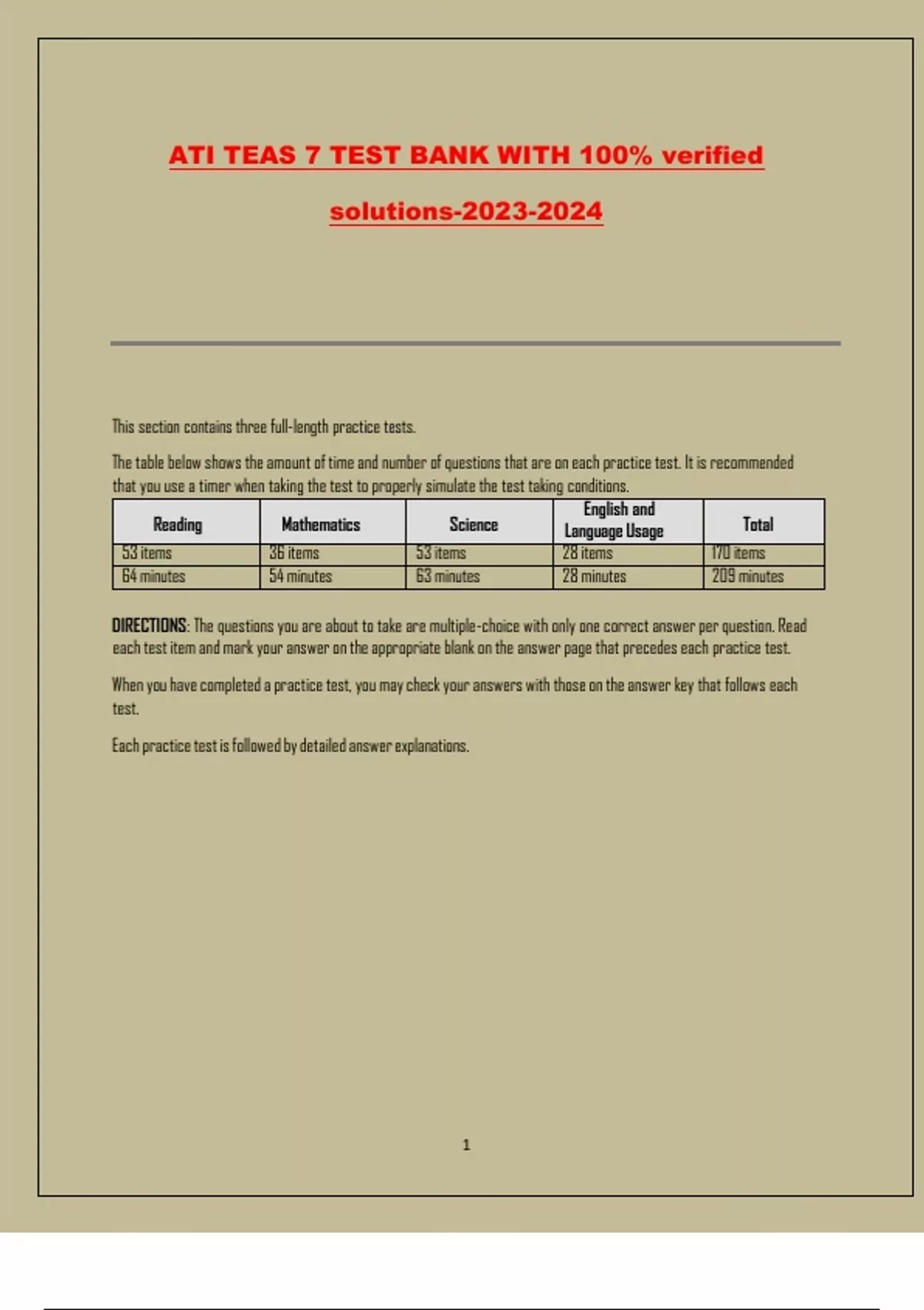 ATI TEAS 7 TEST BANK WITH 100% verified