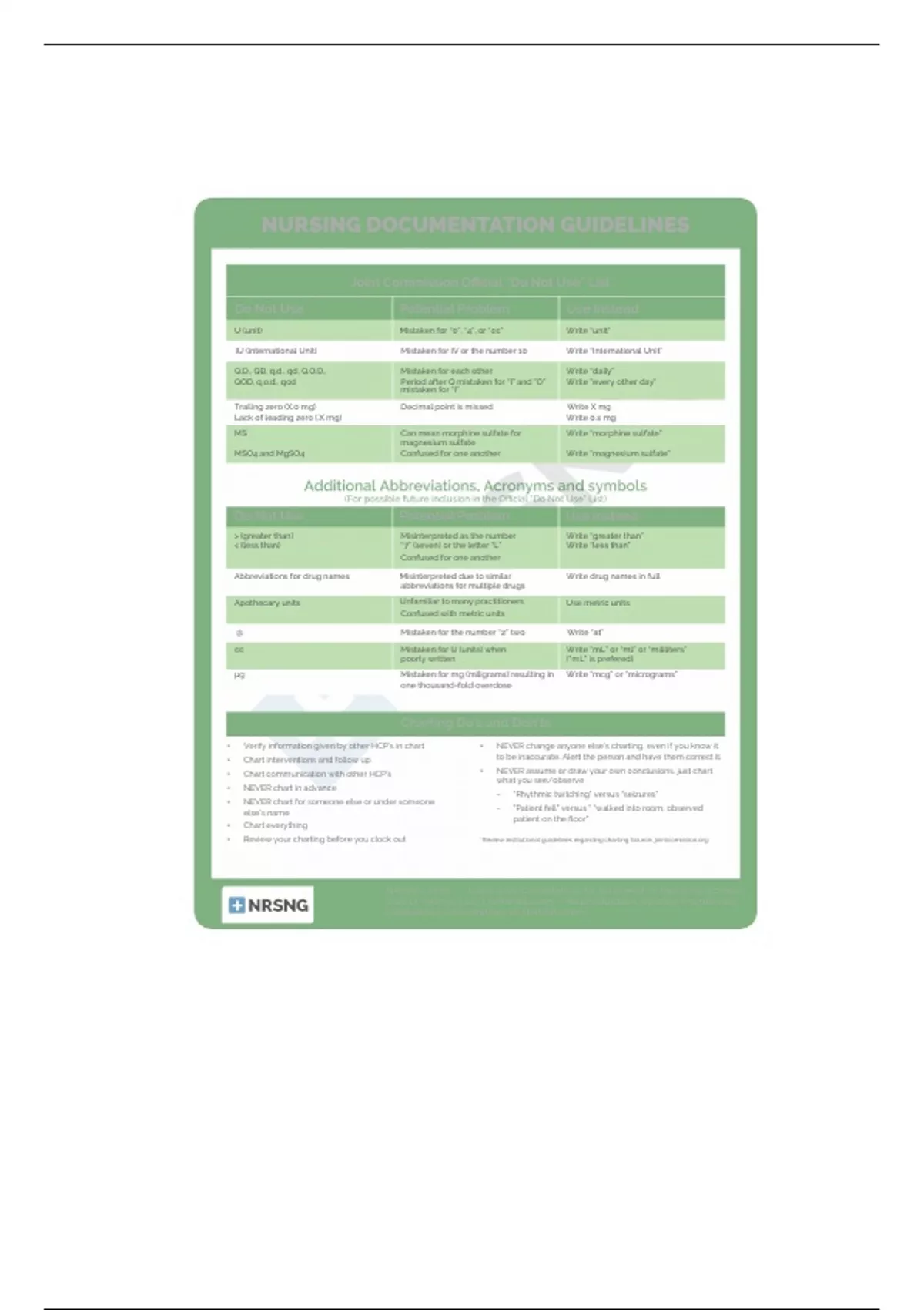 • Review your charting before you clock out *Review institutional guidelines regarding charting Source: jointcomission.org