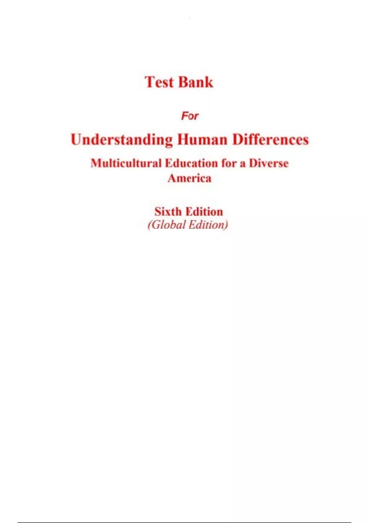 Test Bank For Understanding Human Differences Multicultural Education for a Diverse America Sixth Edition (Global Edition)