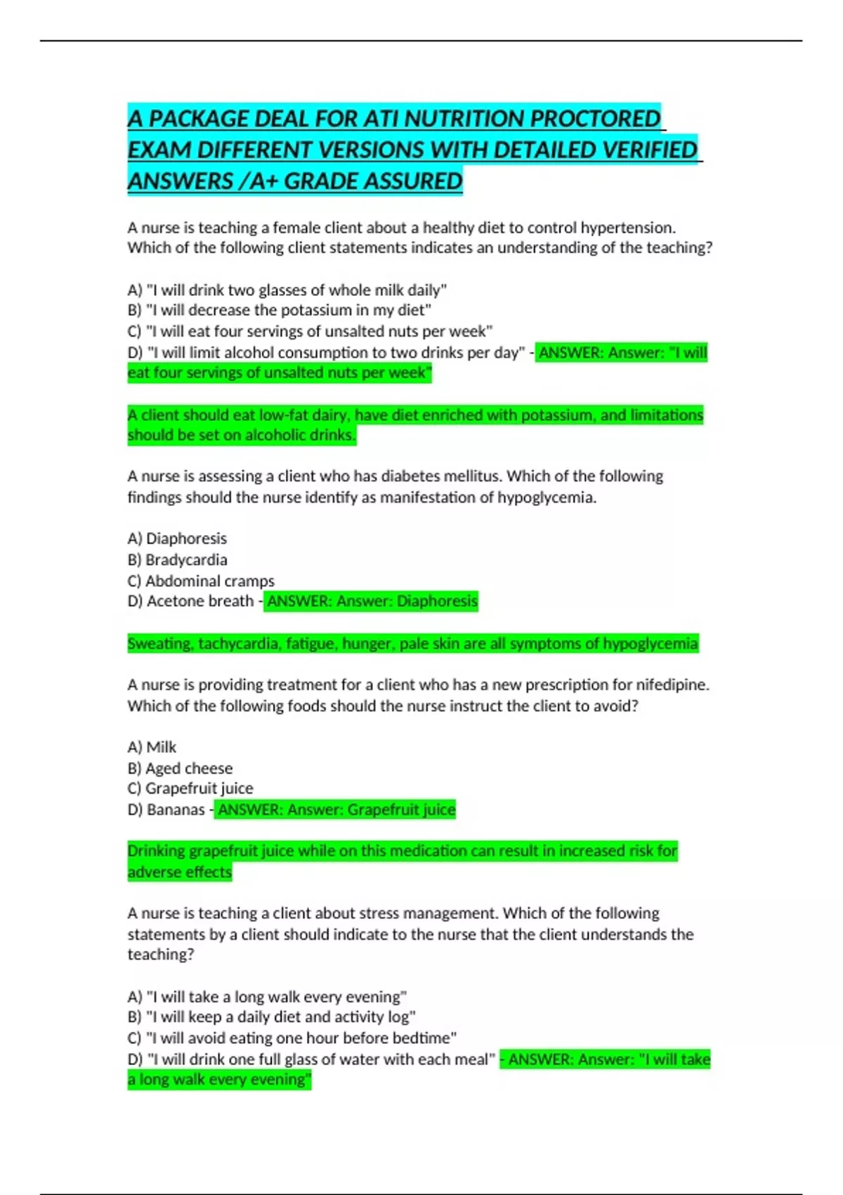 A PACKAGE DEAL FOR ATI NUTRITION PROCTORED