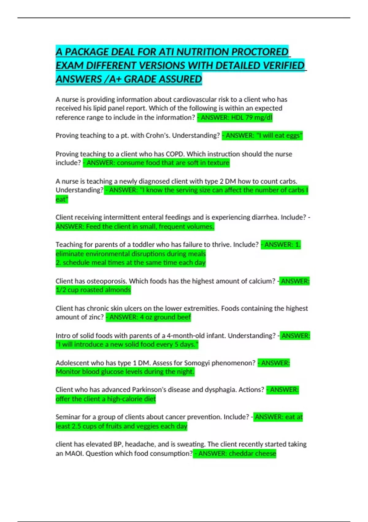 A PACKAGE DEAL FOR ATI NUTRITION PROCTORED