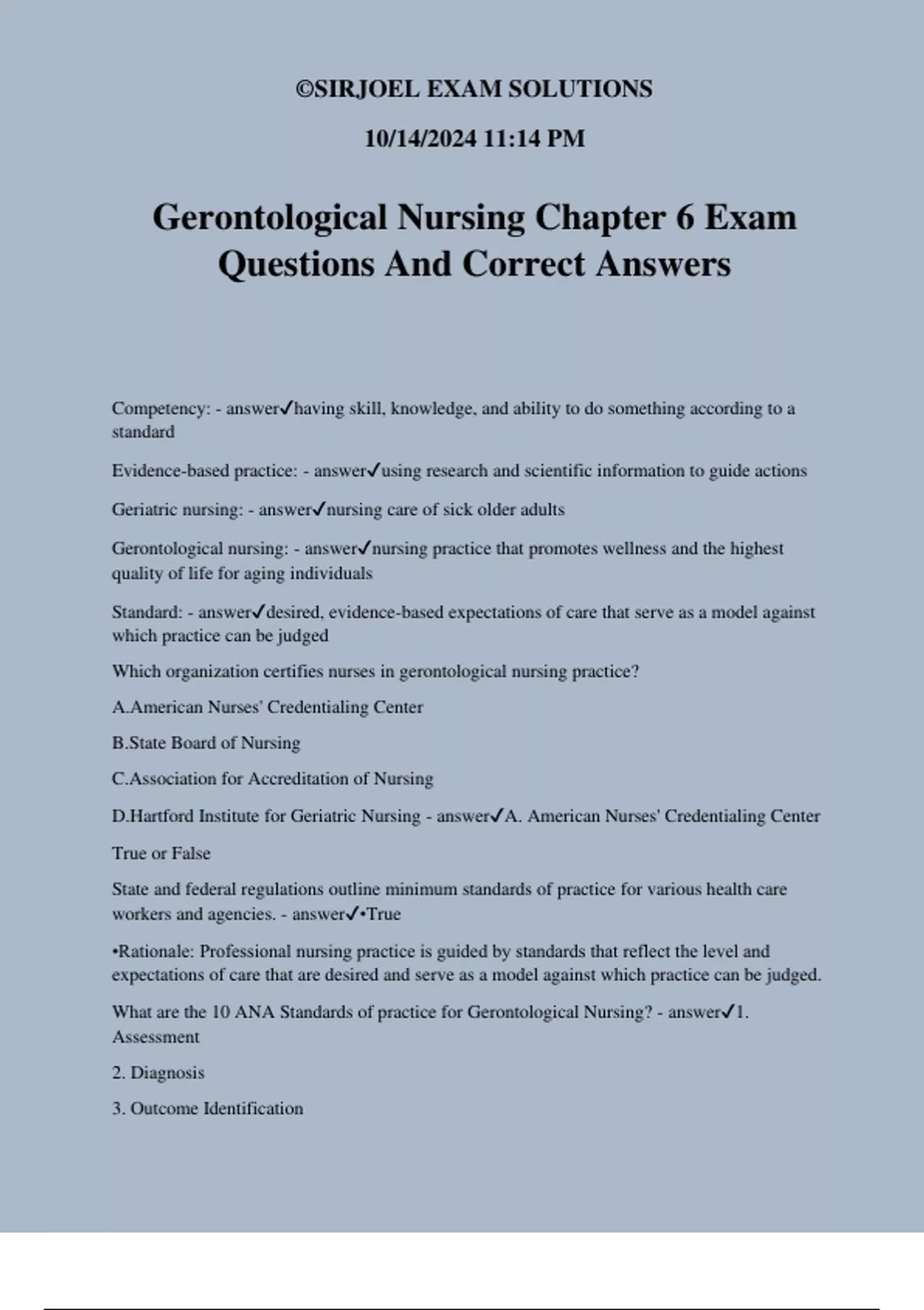 Gerontological nursing: - answer✔nursing practice that promotes wellness and the highest