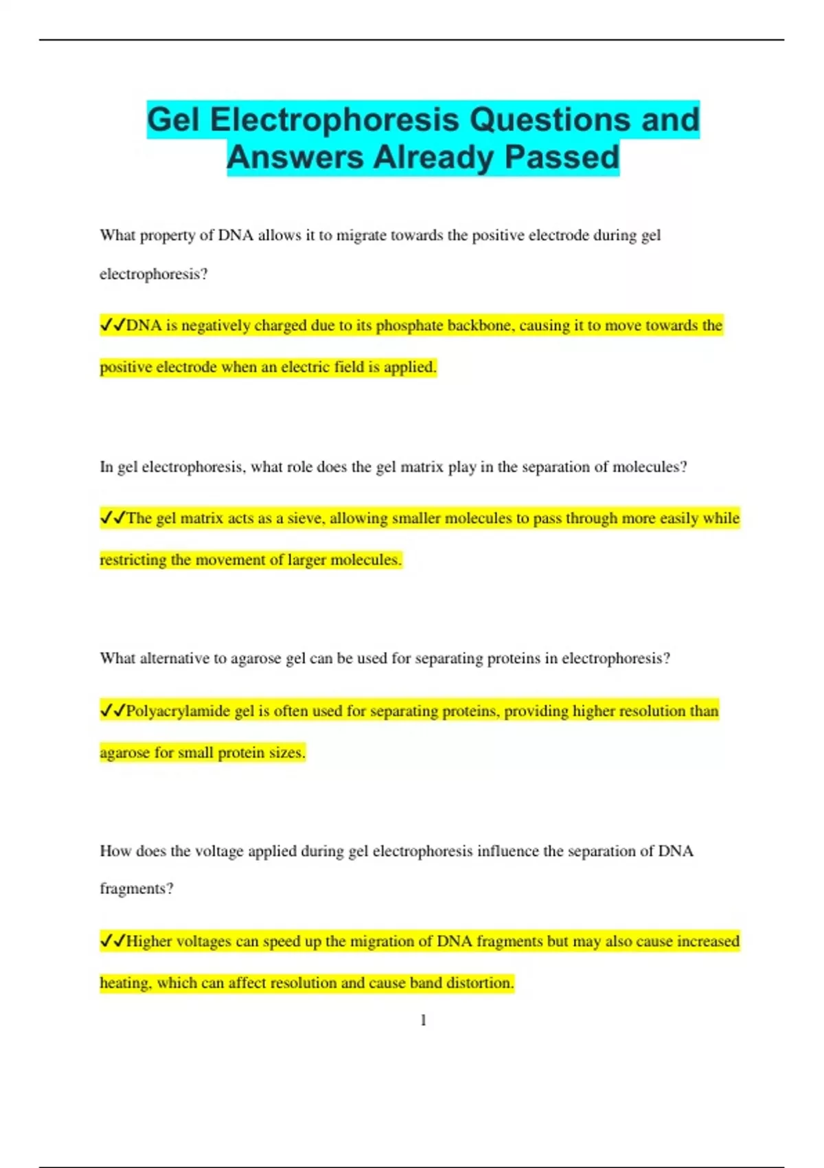 ✔✔Higher voltages can speed up the migration of DNA fragments but may also cause increased