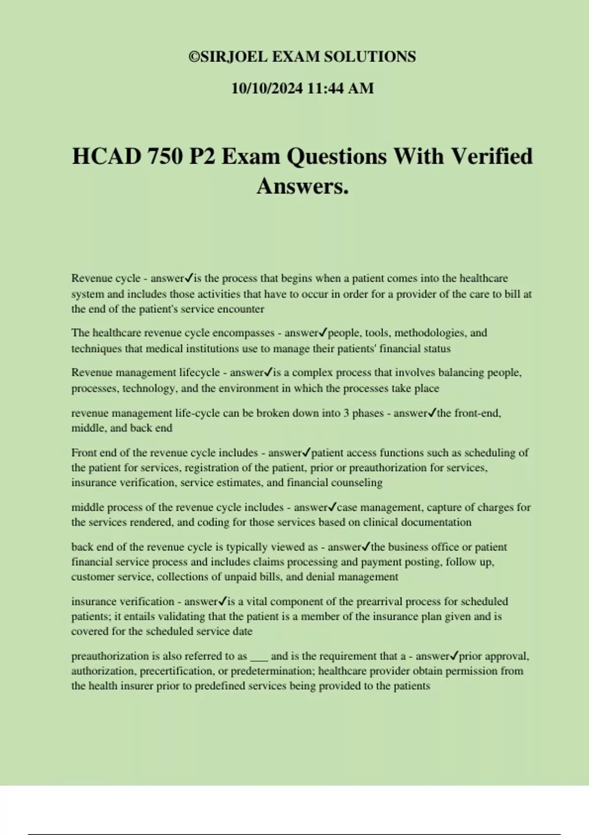 Revenue cycle - answer✔is the process that begins when a patient comes into the healthcare