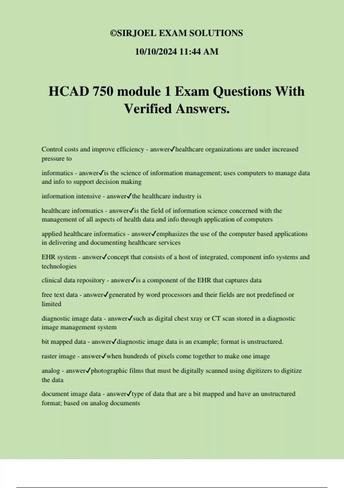 HCAD 750 module 1 Exam Questions With