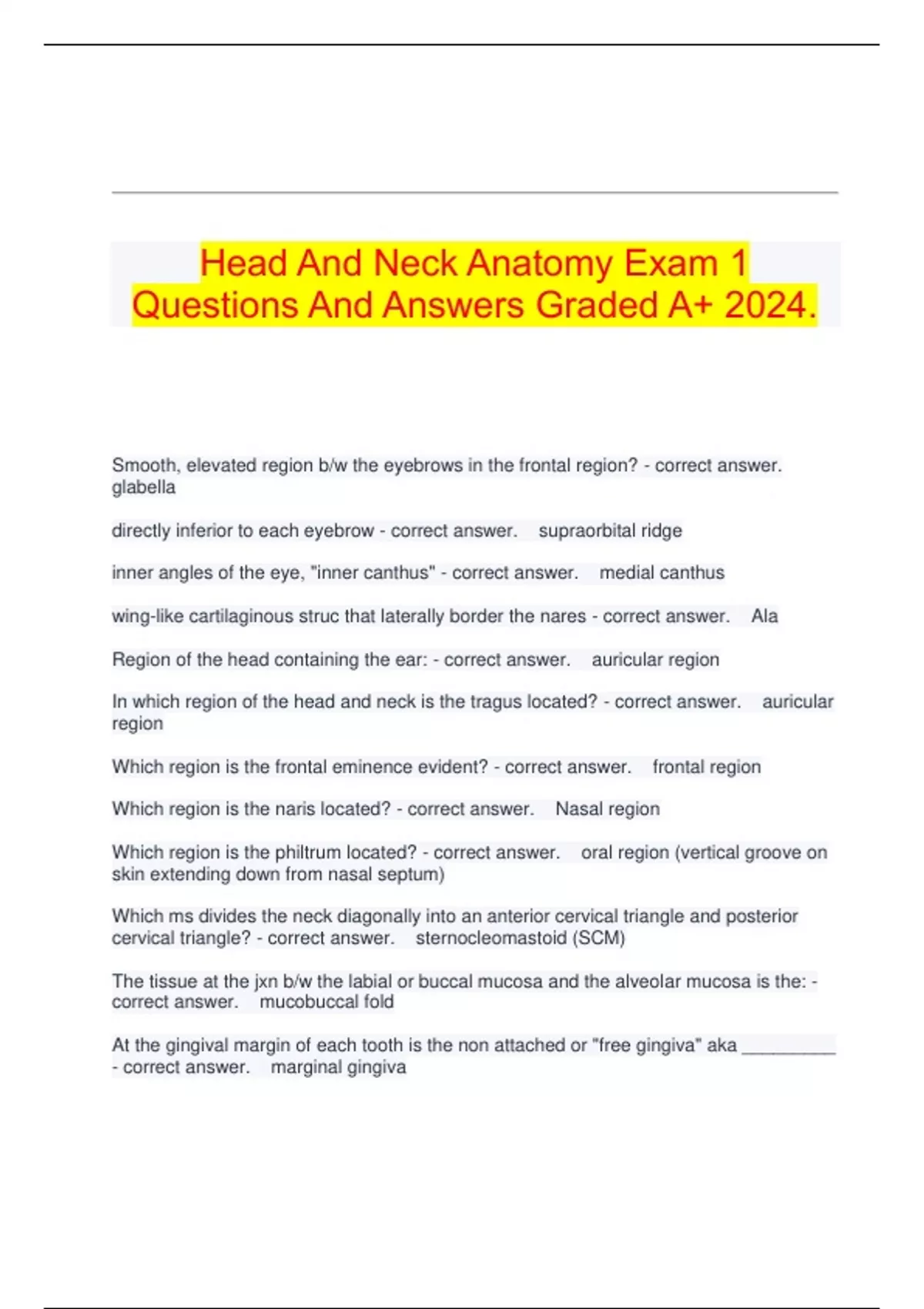 Smooth, elevated region b/w the eyebrows in the frontal region? - correct answer.