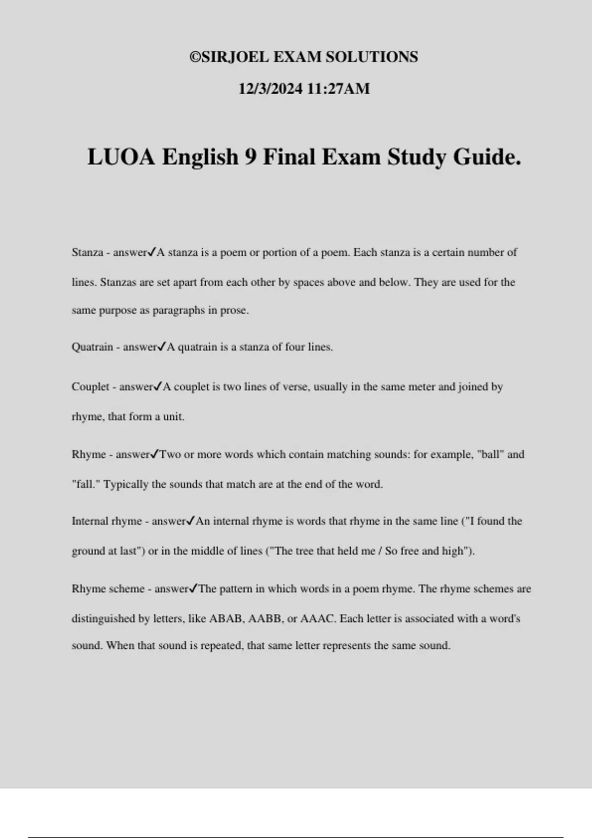 LUOA English 9 Final Exam Study Guide.
