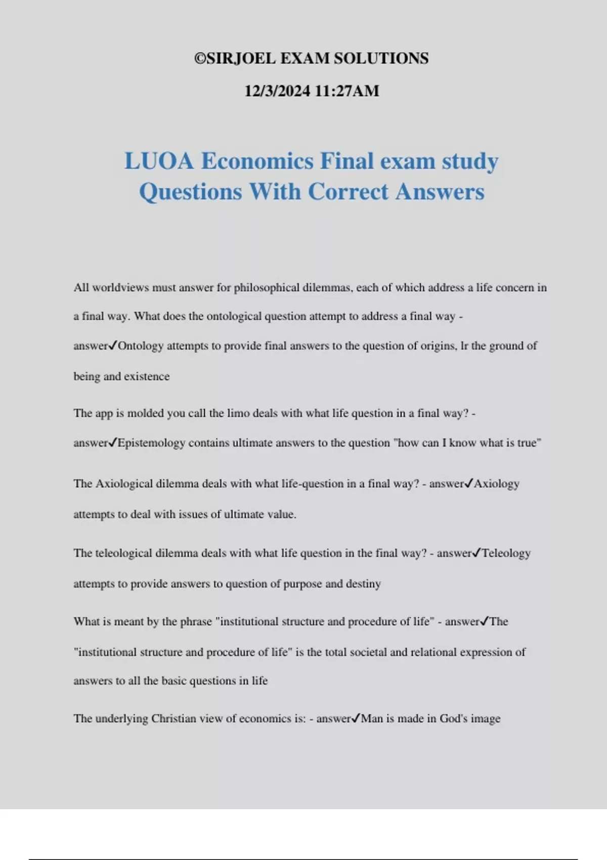The Axiological dilemma deals with what life-question in a final way? - answer✔Axiology