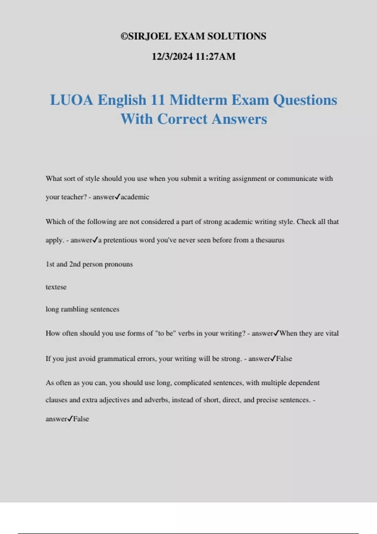 If you just avoid grammatical errors, your writing will be strong. - answer✔False