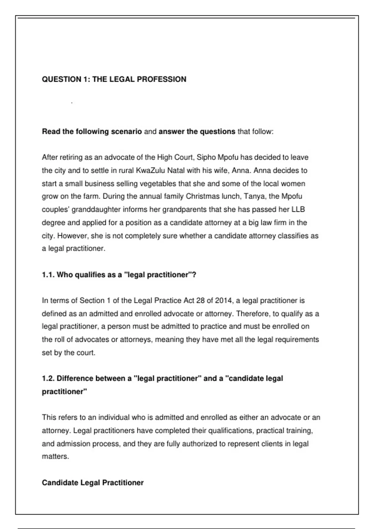 1.2. Difference between a "legal practitioner" and a "candidate legal