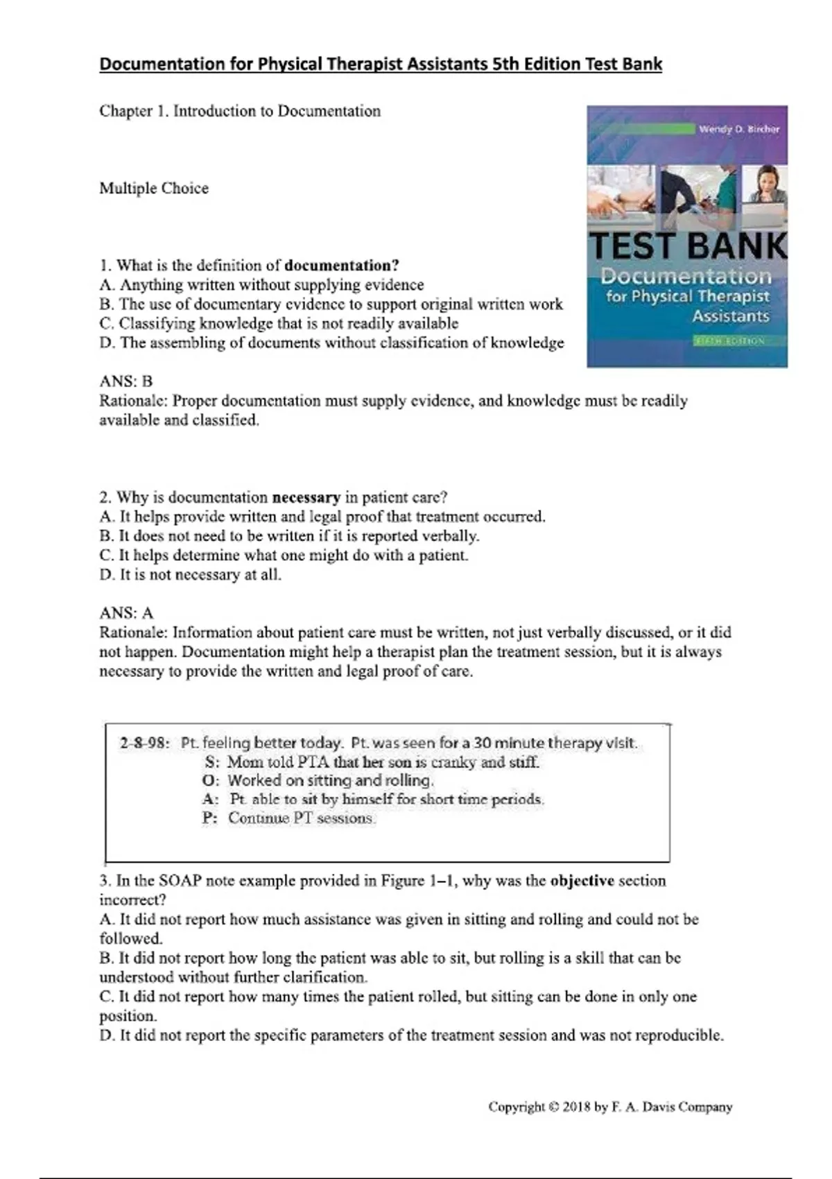 Documentation forT Physical Therapist Assistants 5th Edition Test Bank by Wendy D. Bircher