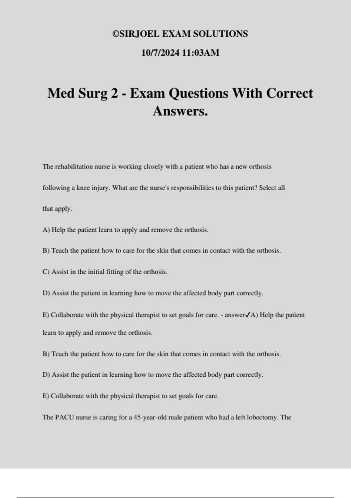 Med Surg 2 - Exam Questions With Correct