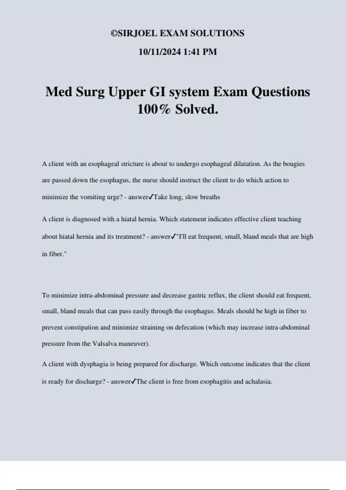 Med Surg Upper GI system Exam Questions
