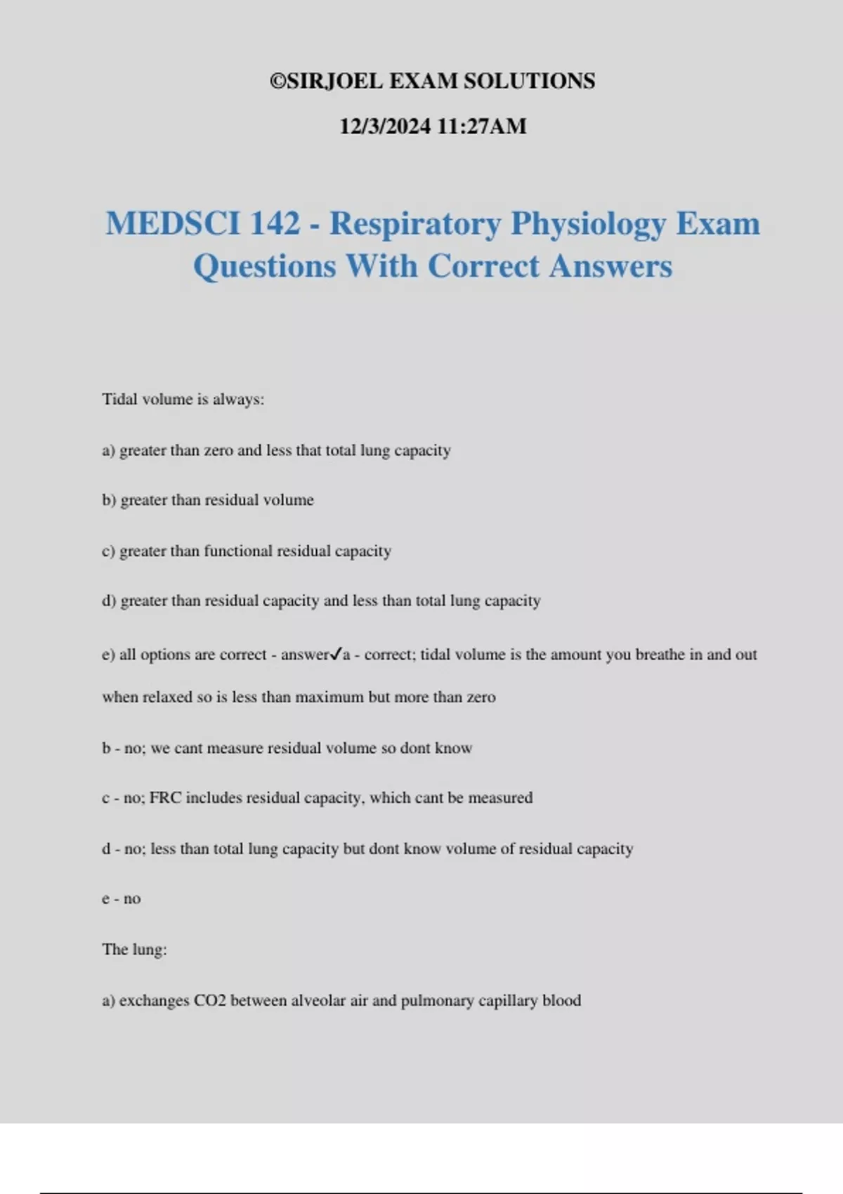 MEDSCI 142 - Respiratory Physiology Exam