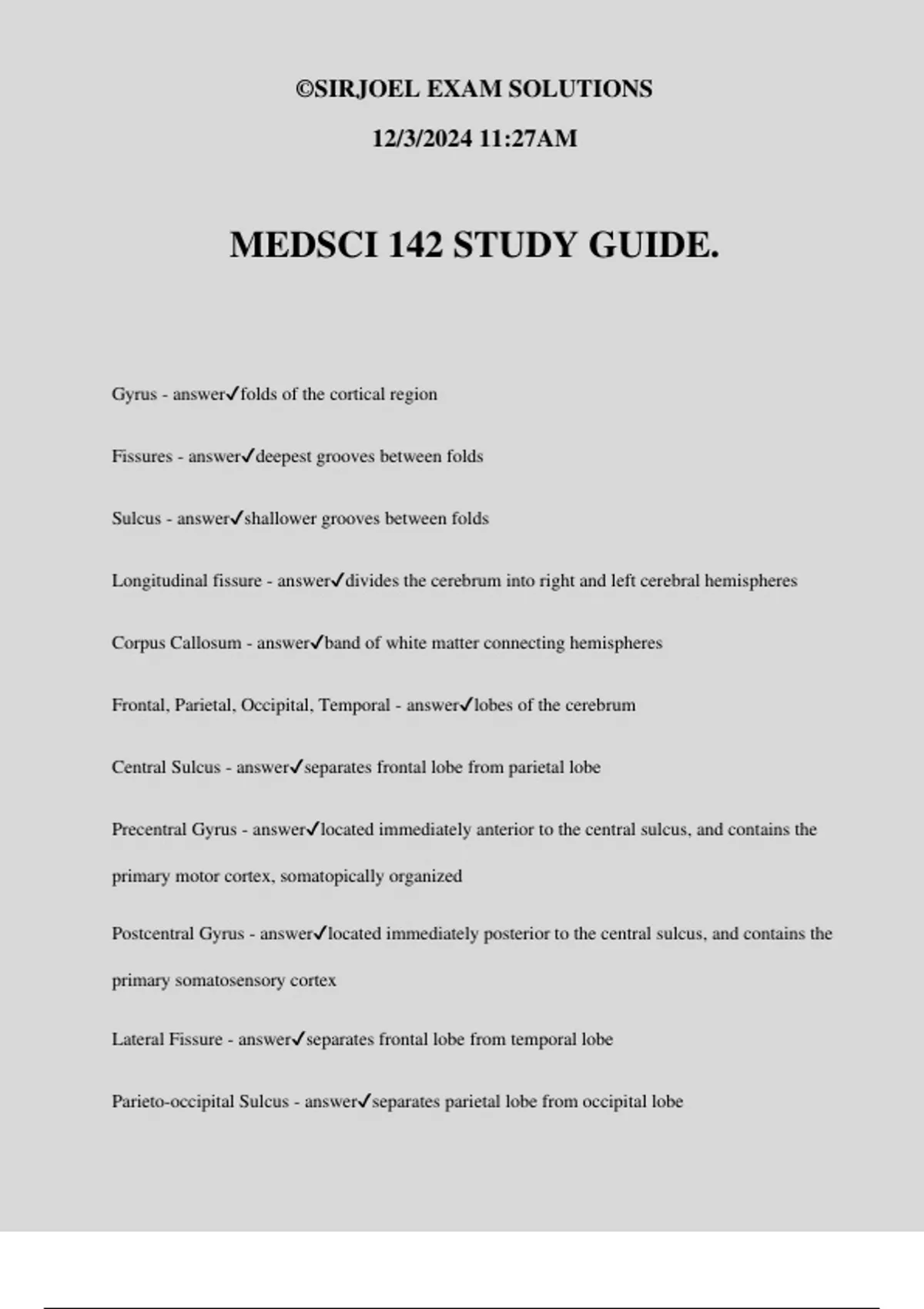 Parieto-occipital Sulcus - answer✔separates parietal lobe from occipital lobe
