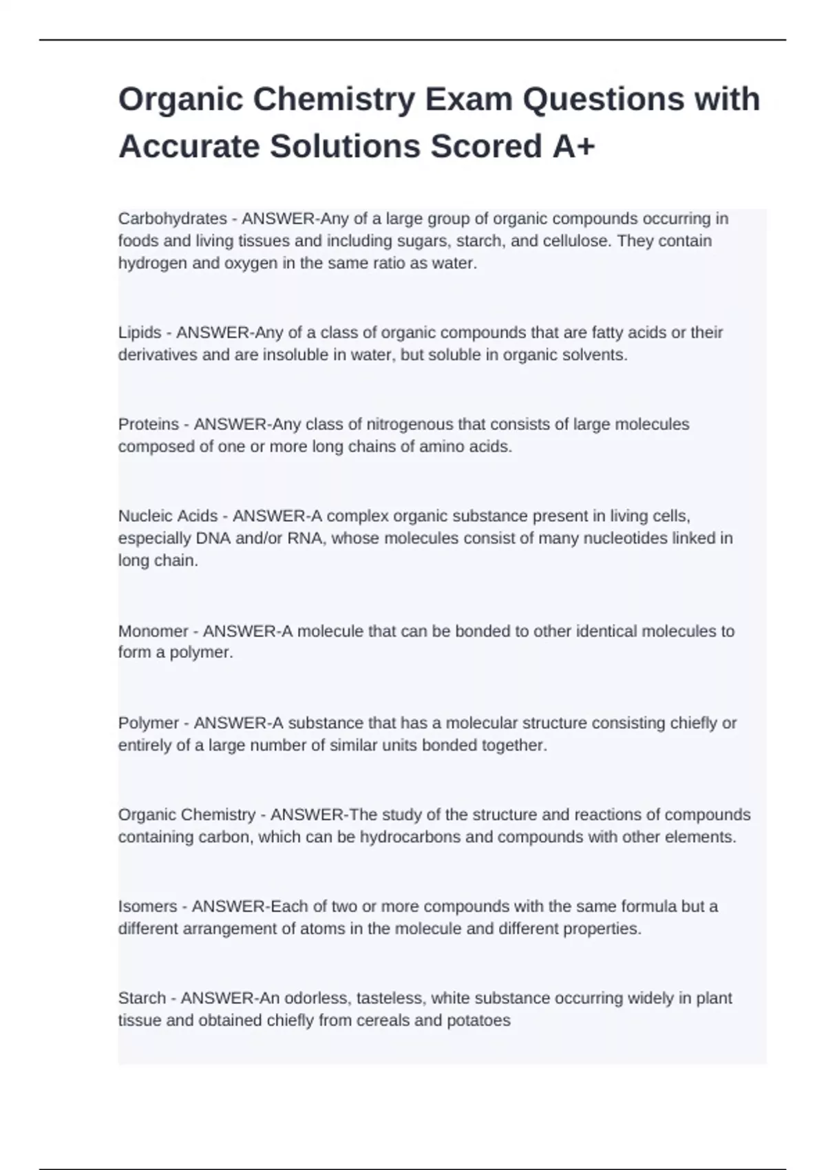 Organic Chemistry - ANSWER-The study of the structure and reactions of compounds