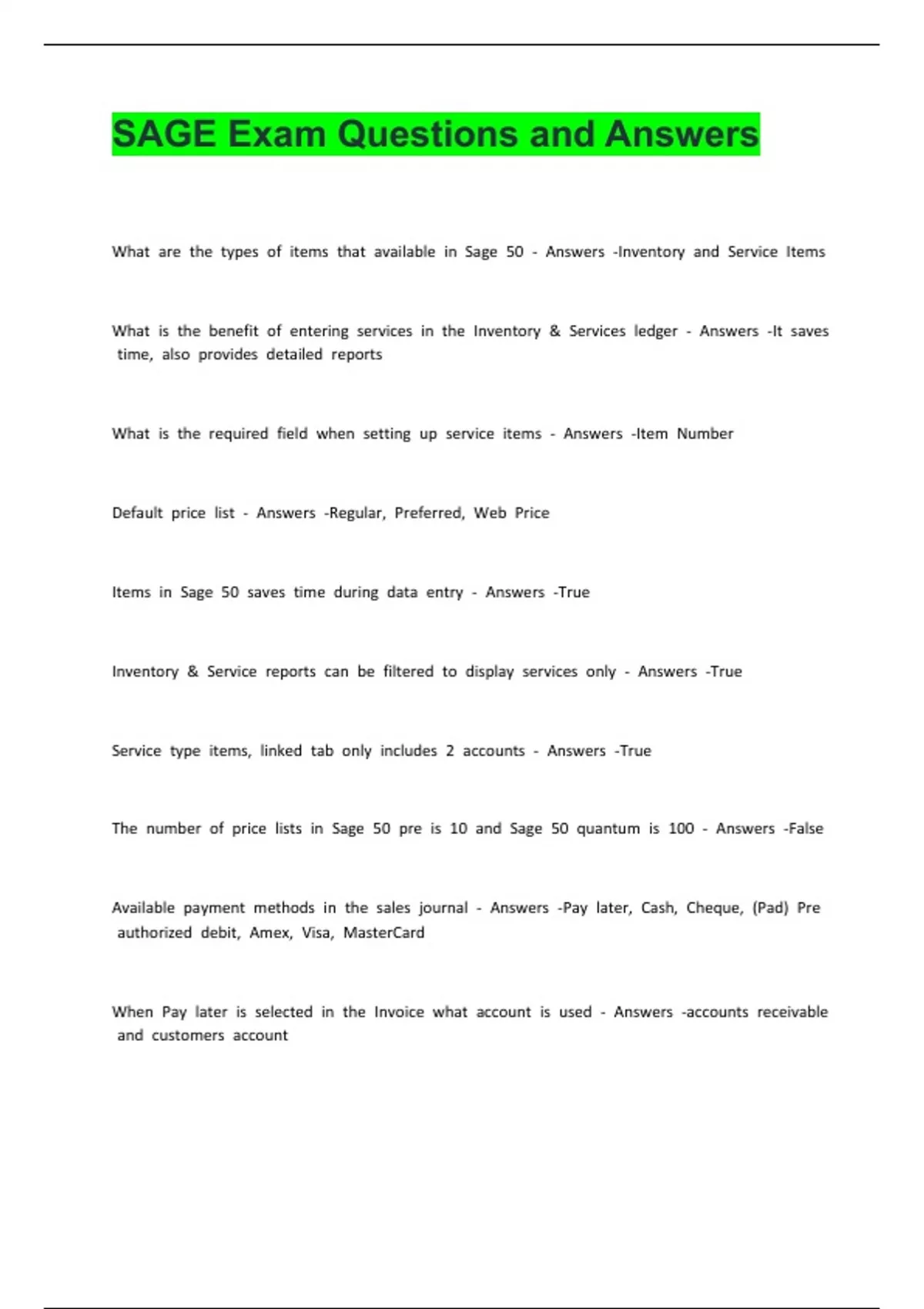 SAGE Exam Questions and Answers