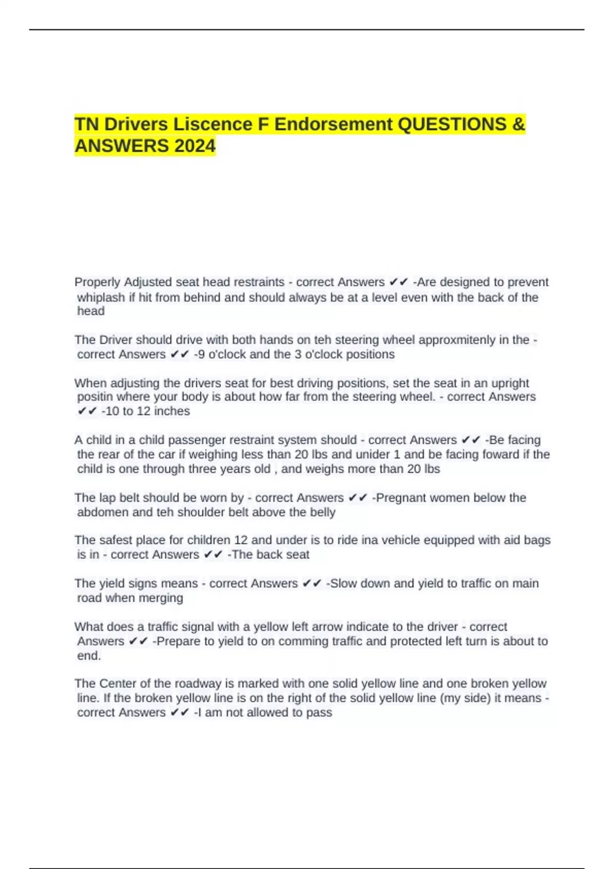 TN Drivers Liscence F Endorsement QUESTIONS &