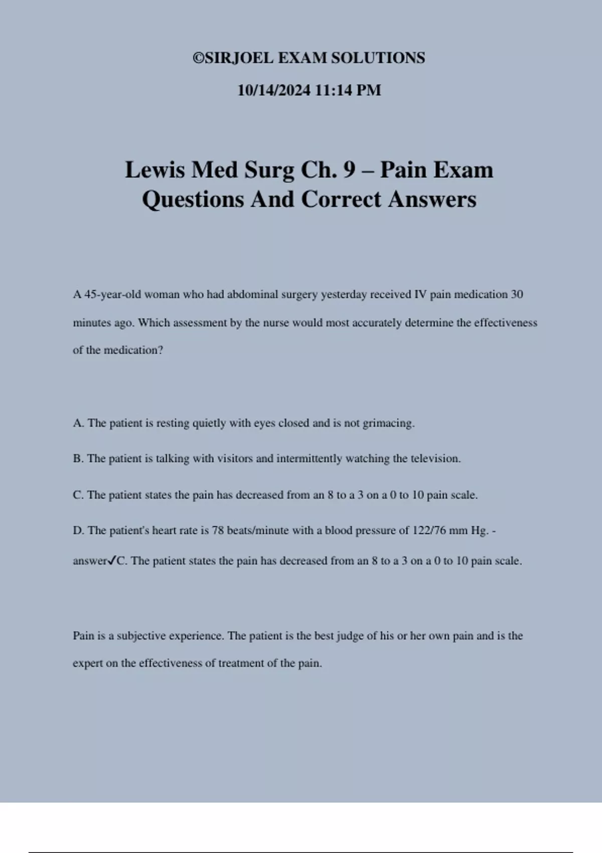 Pain is a subjective experience. The patient is the best judge of his or her own pain and is the