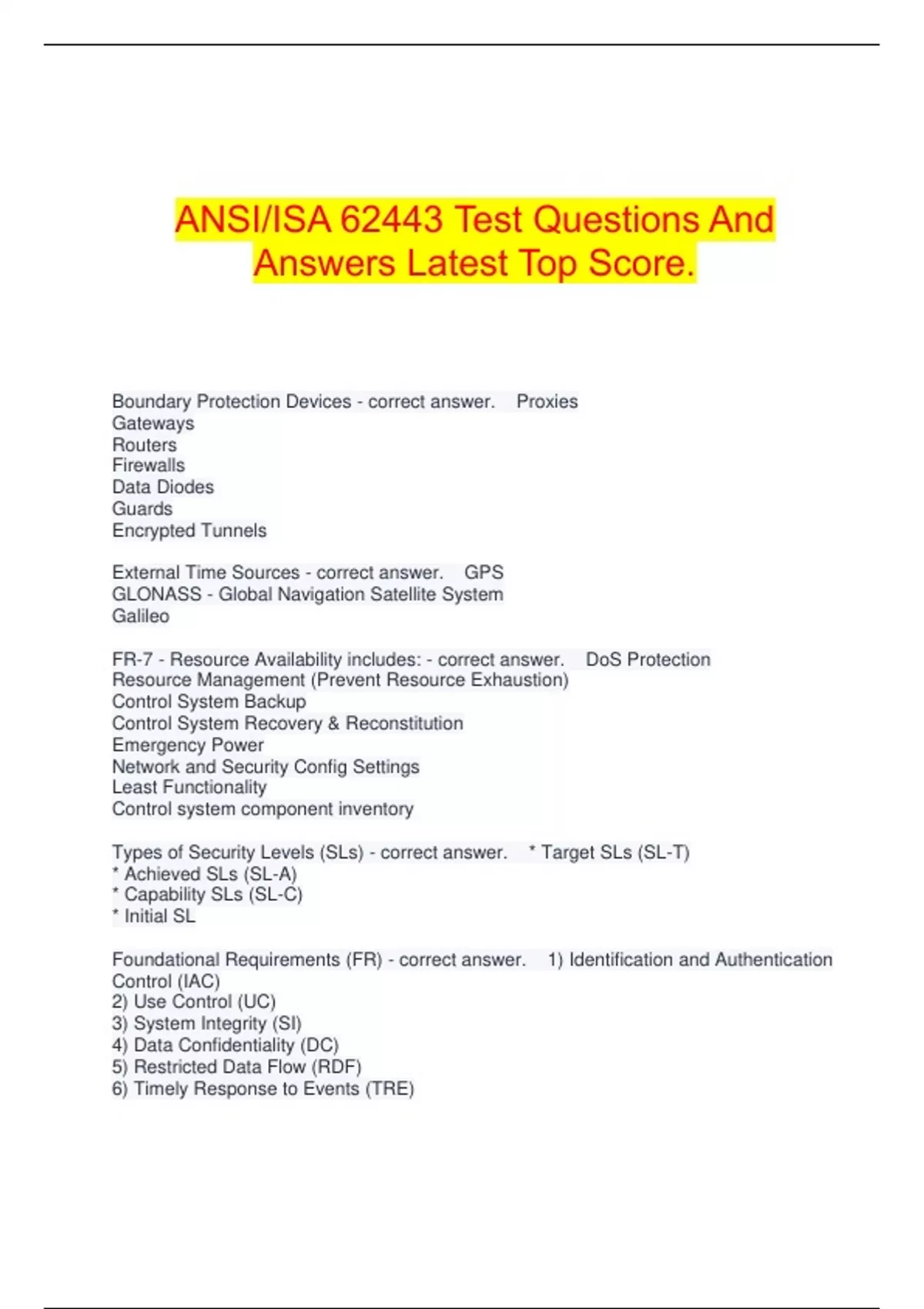 Types of Security Levels (SLs) - correct answer. * Target SLs (SL-T)