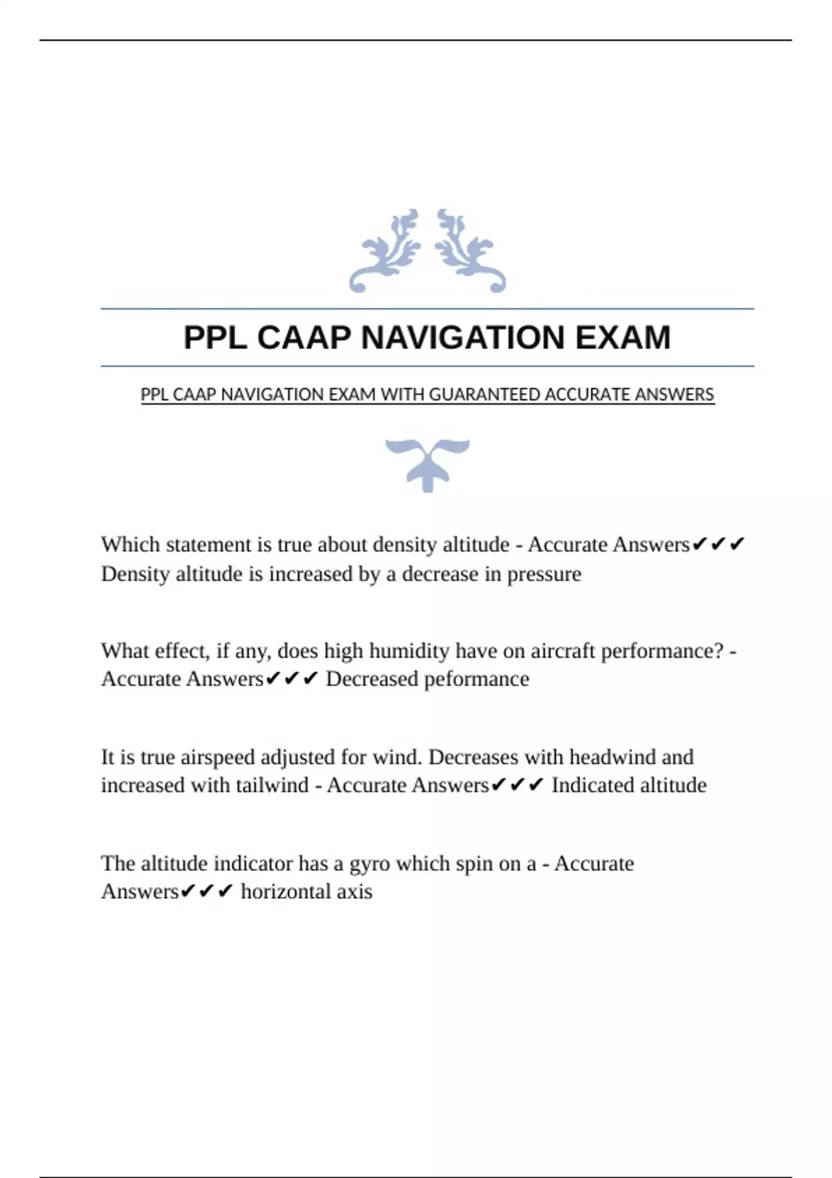 PPL CAAP NAVIGATION EXAM WITH GUARANTEED ACCURATE ANSWERS