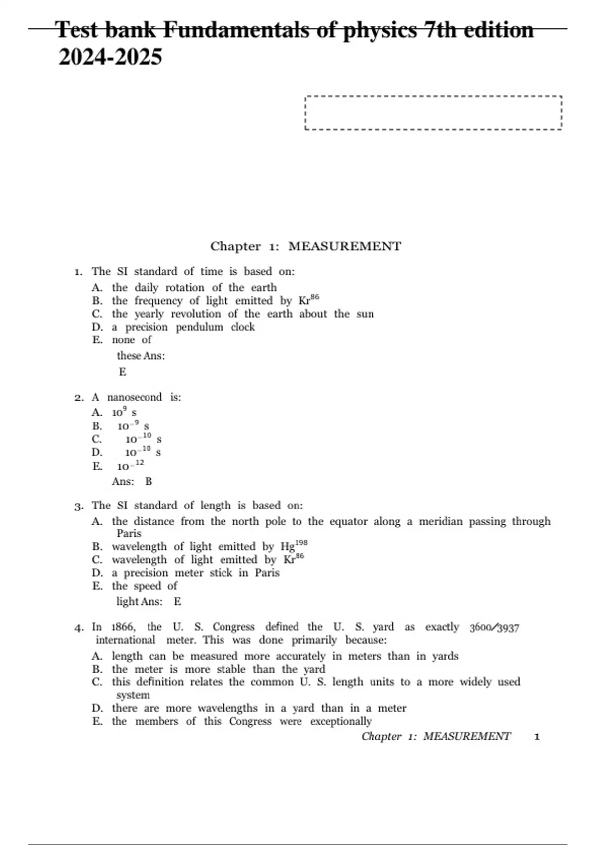 Test bank Fundamentals of physics 7th edition