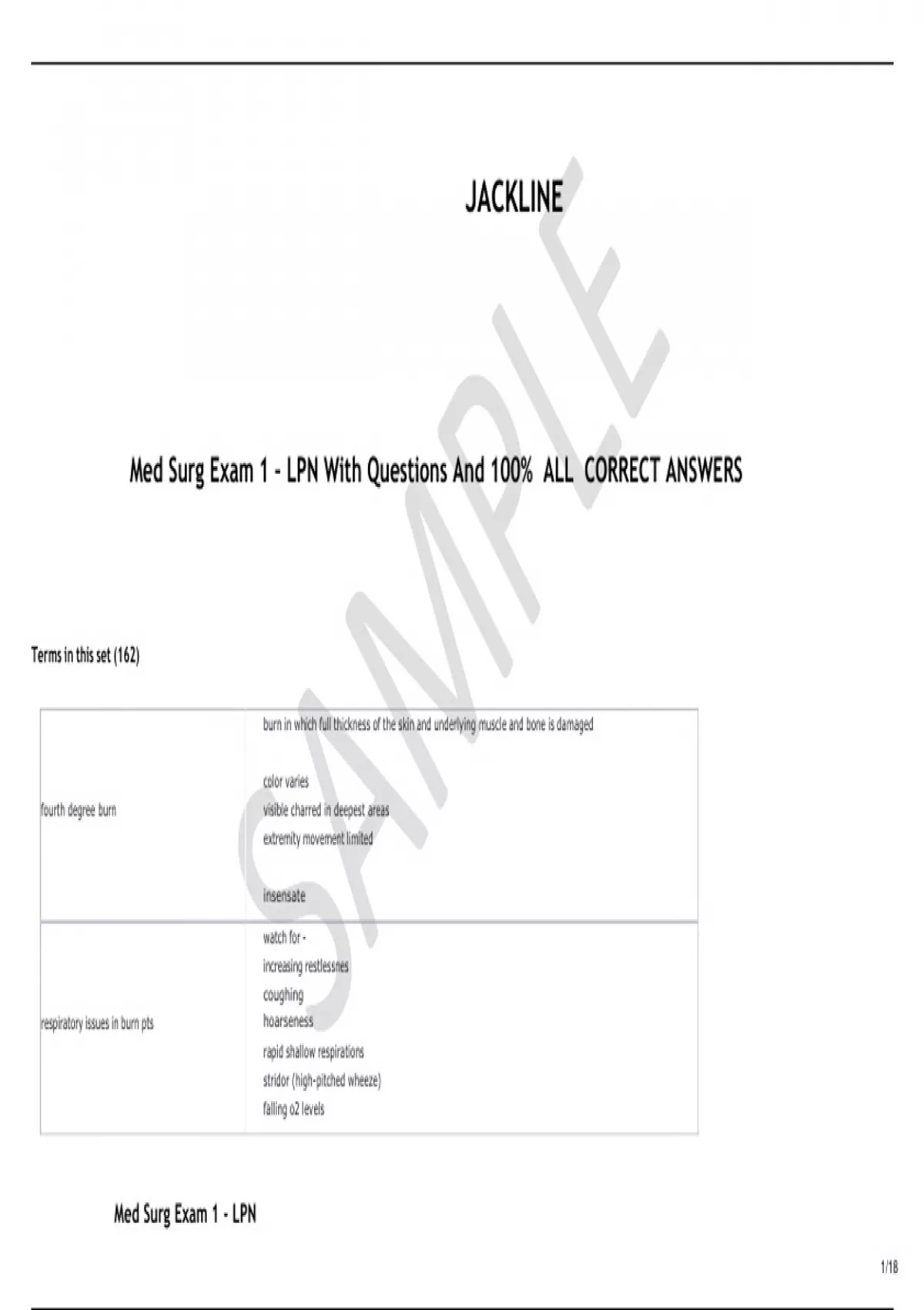 Med Surg Exam 1 – LPN With Questions And 100% ALL CORRECT ANSWERS