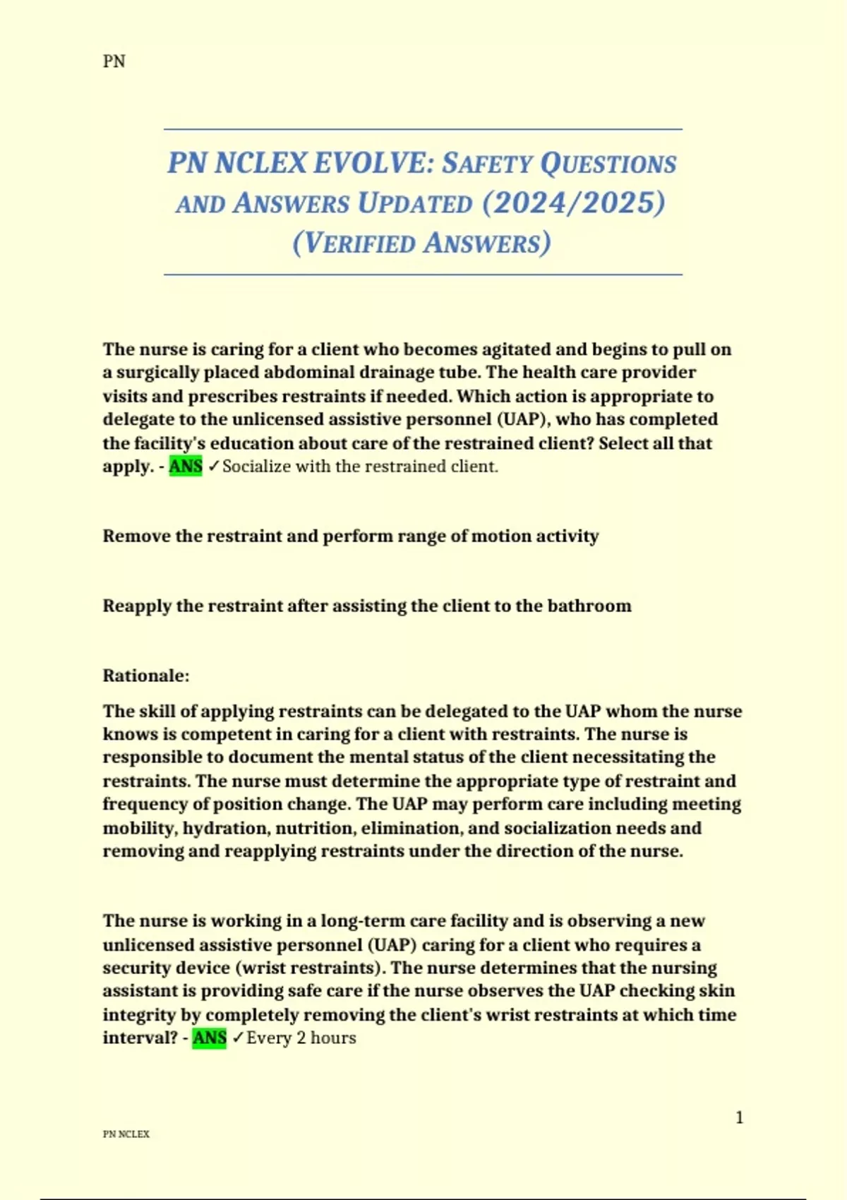 apply. - ANS ✓Socialize with the restrained client.