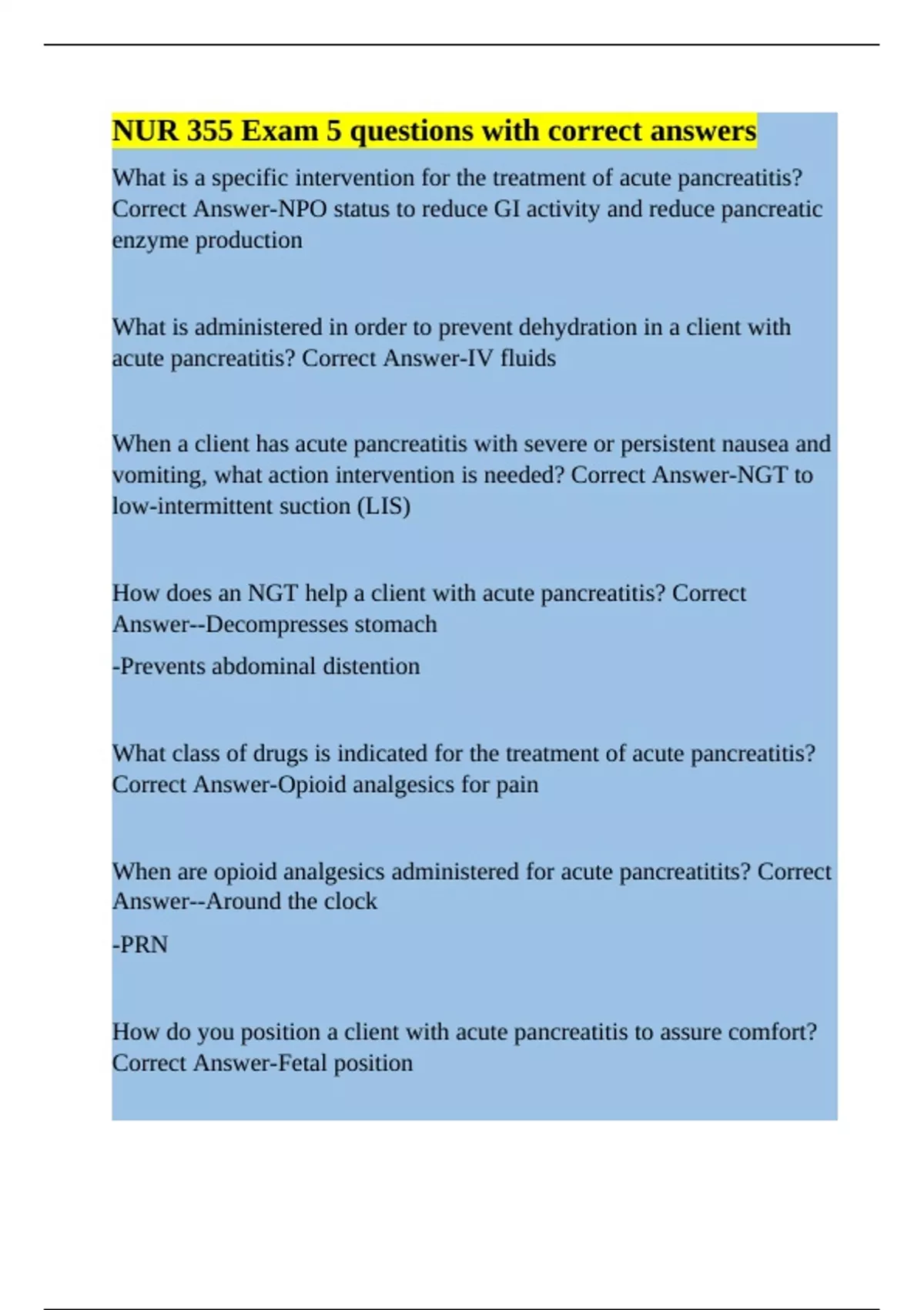 acute pancreatitis? Correct Answer-IV fluids