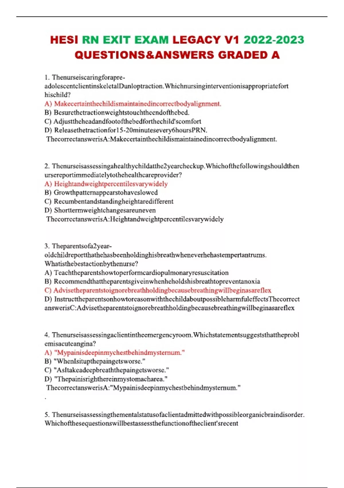 HESI RN EXIT EXAM LEGACY V1 - Test Questions & VERIFIED, Complete, Correct Answers (2024) with Complete Detailed Solutions
