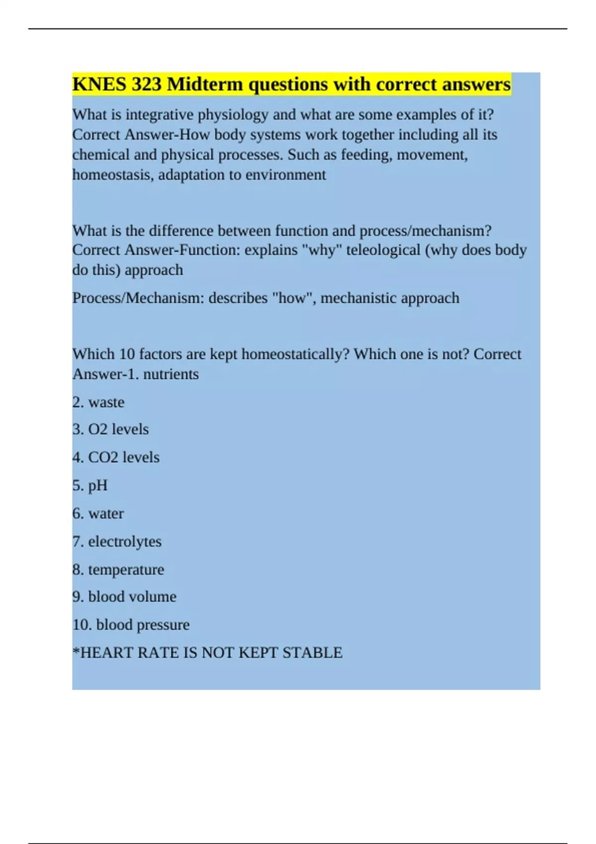 Which 10 factors are kept homeostatically? Which one is not? Correct