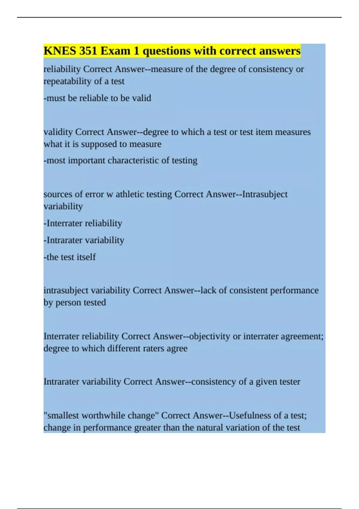 "smallest worthwhile change" Correct Answer--Usefulness of a test;