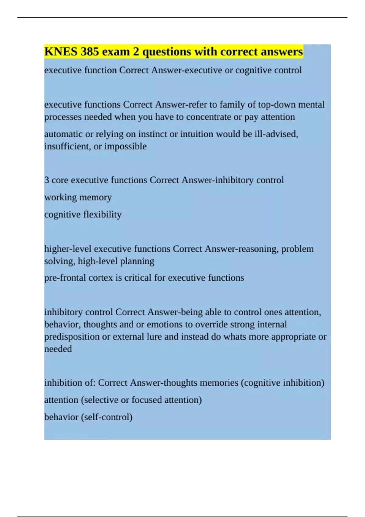 executive function Correct Answer-executive or cognitive control
