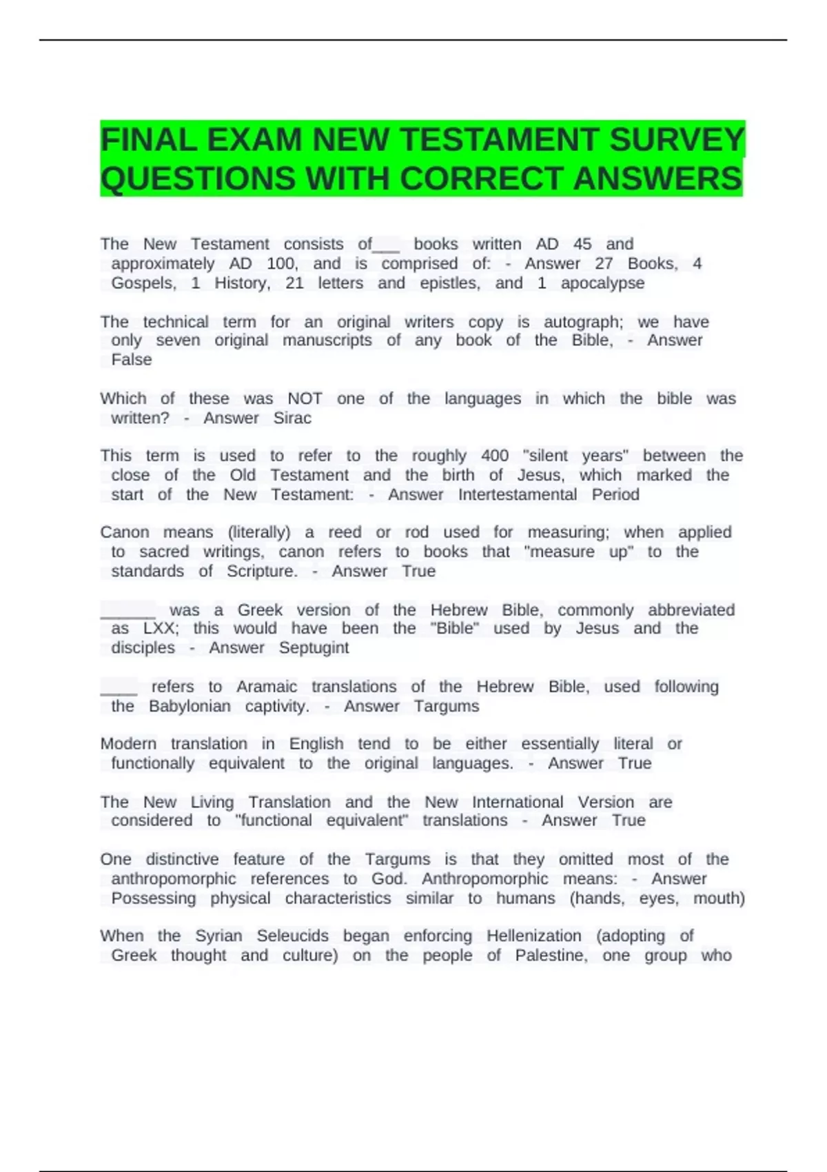 ssstart ssof ssthe ssNew ssTestament: ss- ssAnswer ssIntertestamental ssPeriod