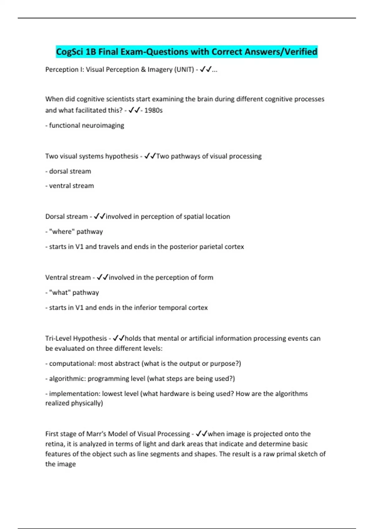 Perception I: Visual Perception & Imagery (UNIT) - ✔✔...