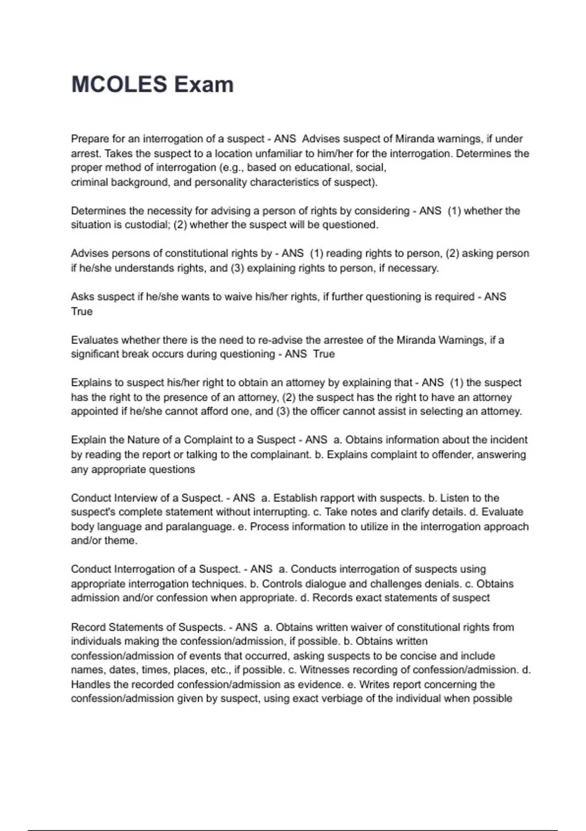 Conduct Interrogation of a Suspect. - ANS a. Conducts interrogation of suspects using