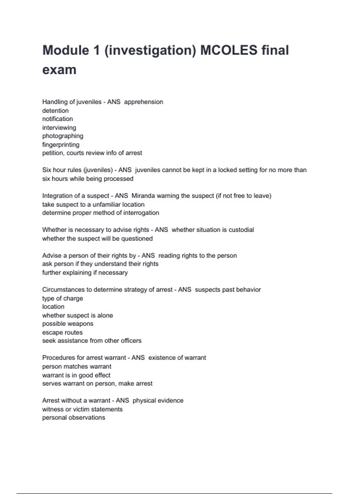 Warrantless search procedure (incident to arrest) - ANS -Establish arrest before conducting