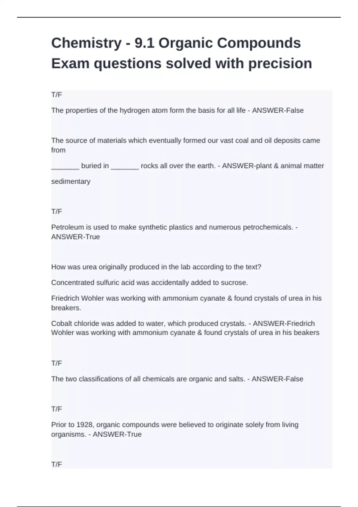 The two classifications of all chemicals are organic and salts. - ANSWER-False