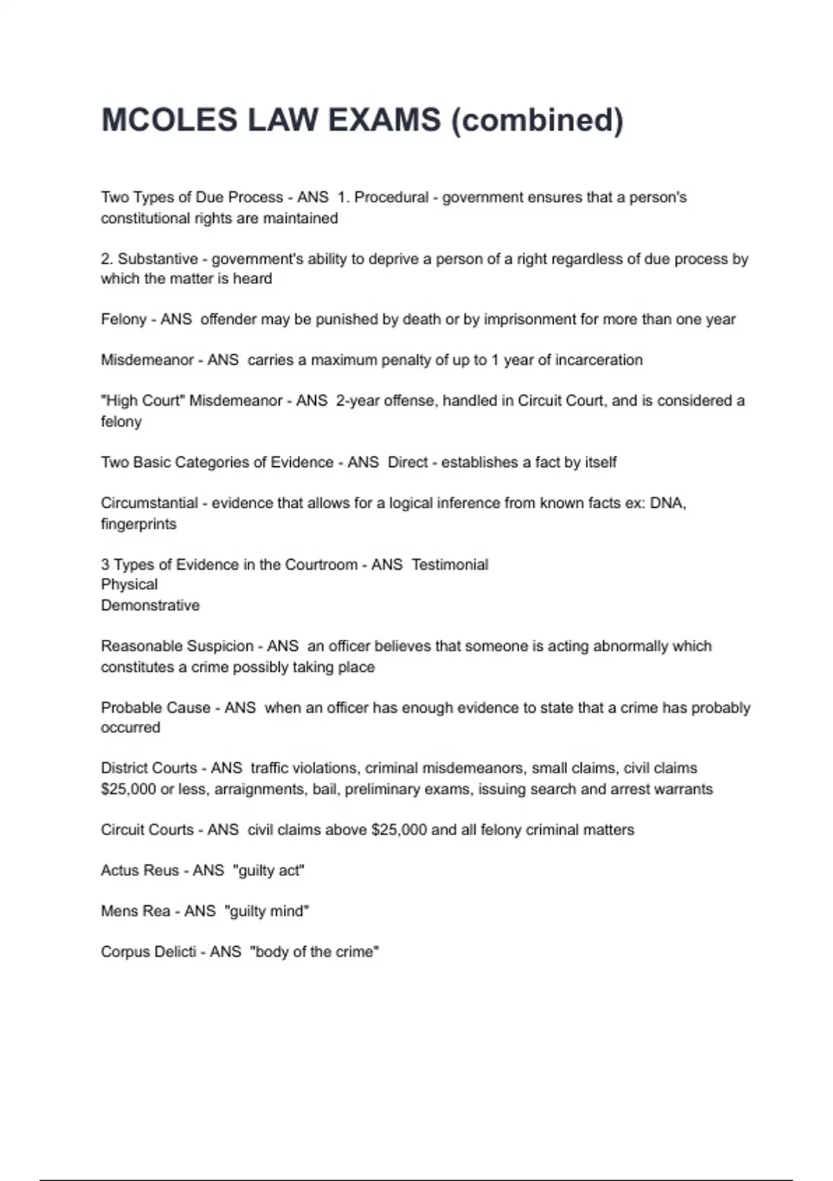 MCOLES LAW EXAMS (combined)
