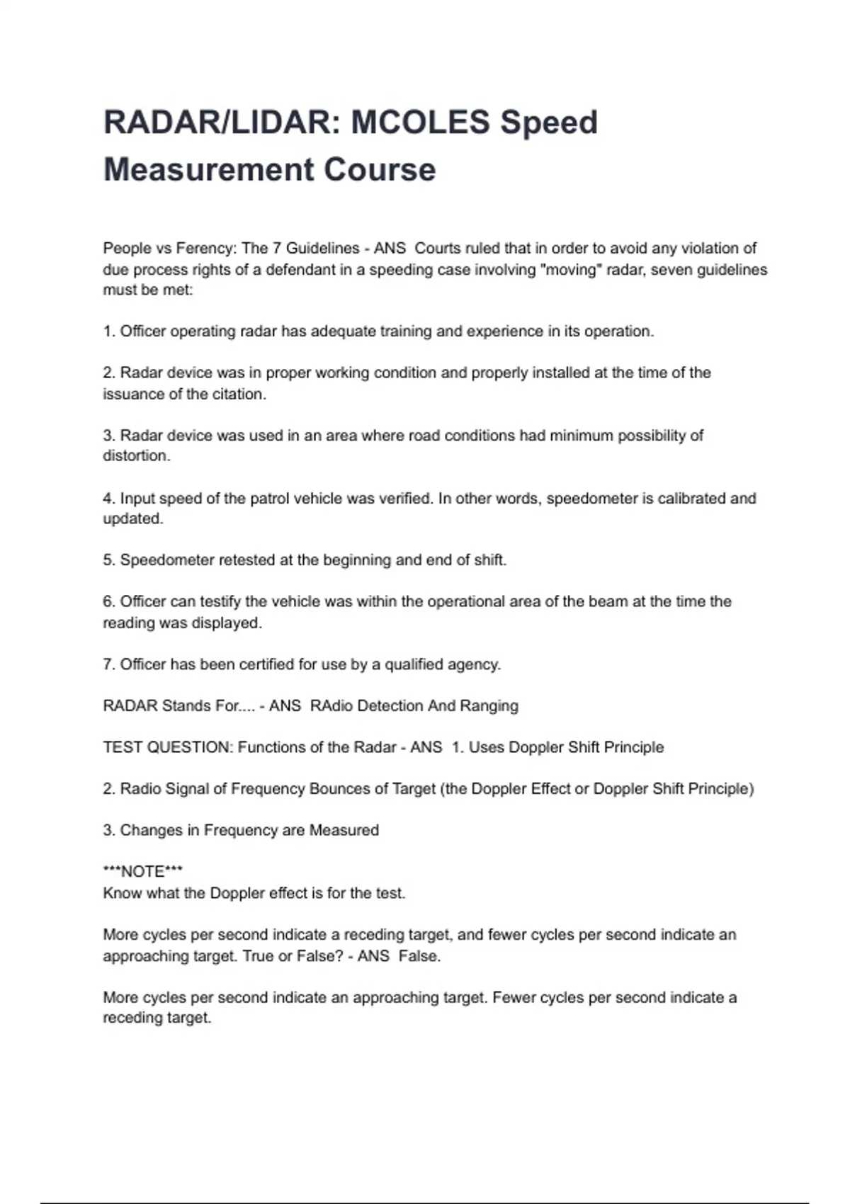 RADAR/LIDAR: MCOLES Speed Measurement Course Exam 2024/2025 Questions With Completed & Verified Solutions.