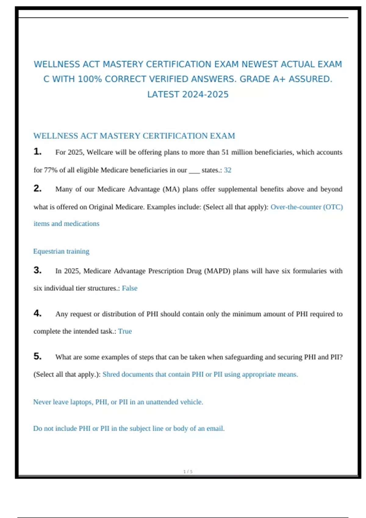 WELLNESS ACT MASTERY CERTIFICATION EXAM